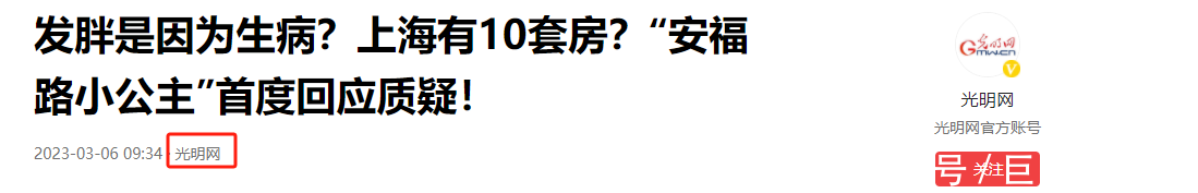 光明网,《发胖是因为生病?上海有10套房?“安福路小公主”首度回答质疑!》