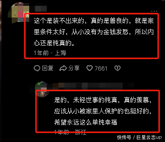 “这个是装不出来的,竟然是和煦的,即是家里条目太好,从小莫得为钞票发愁,是以内心如故纯粹的。”