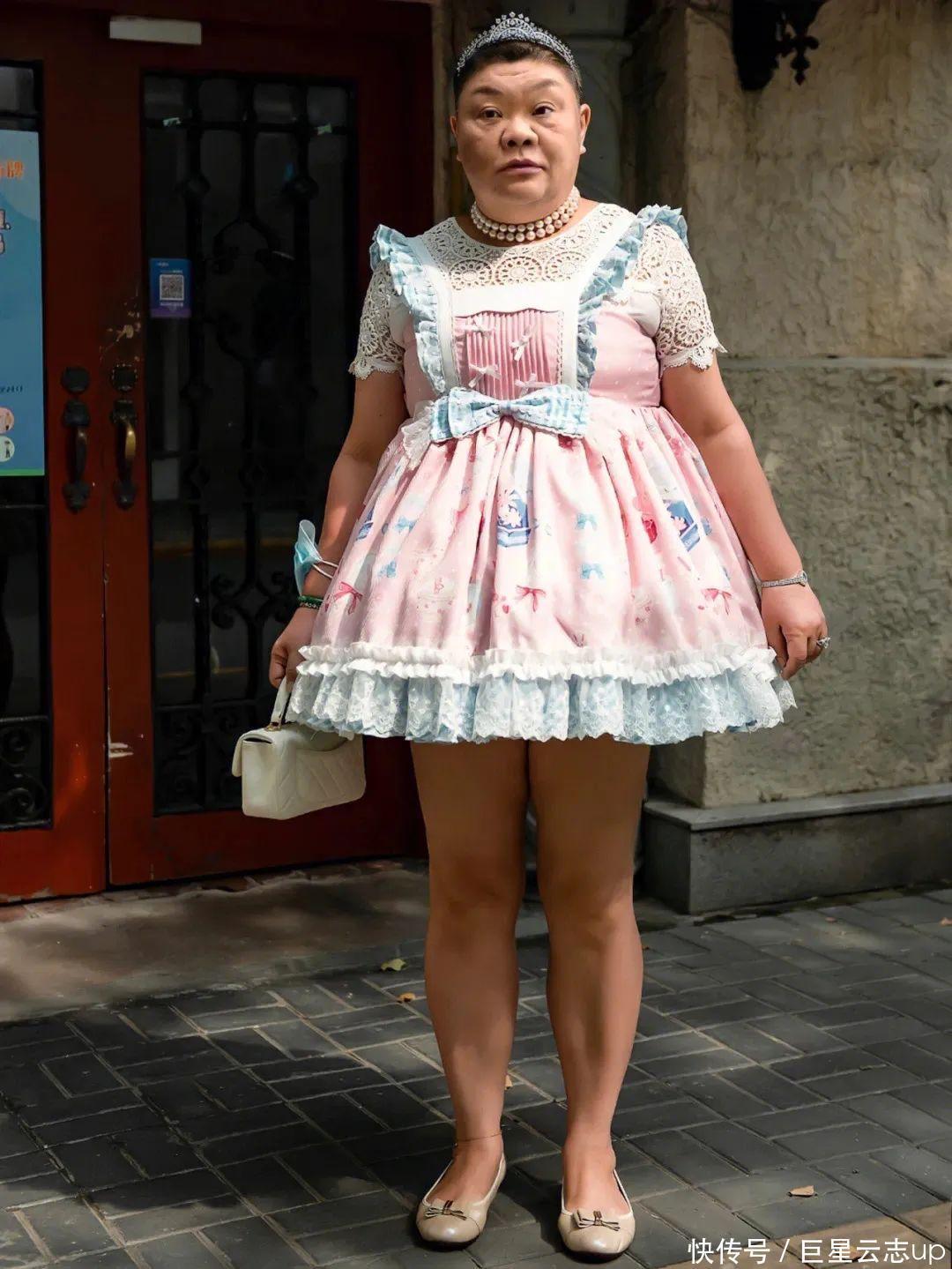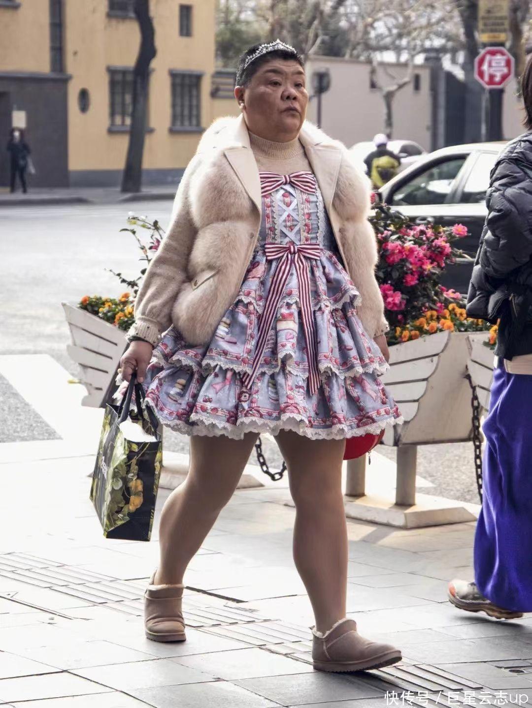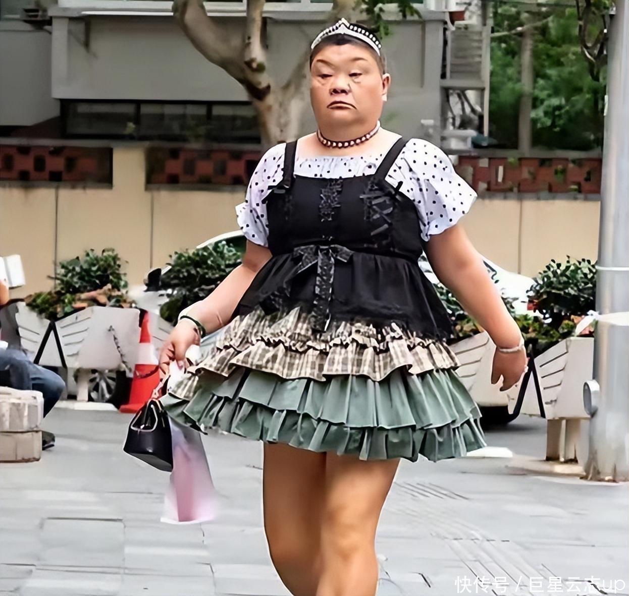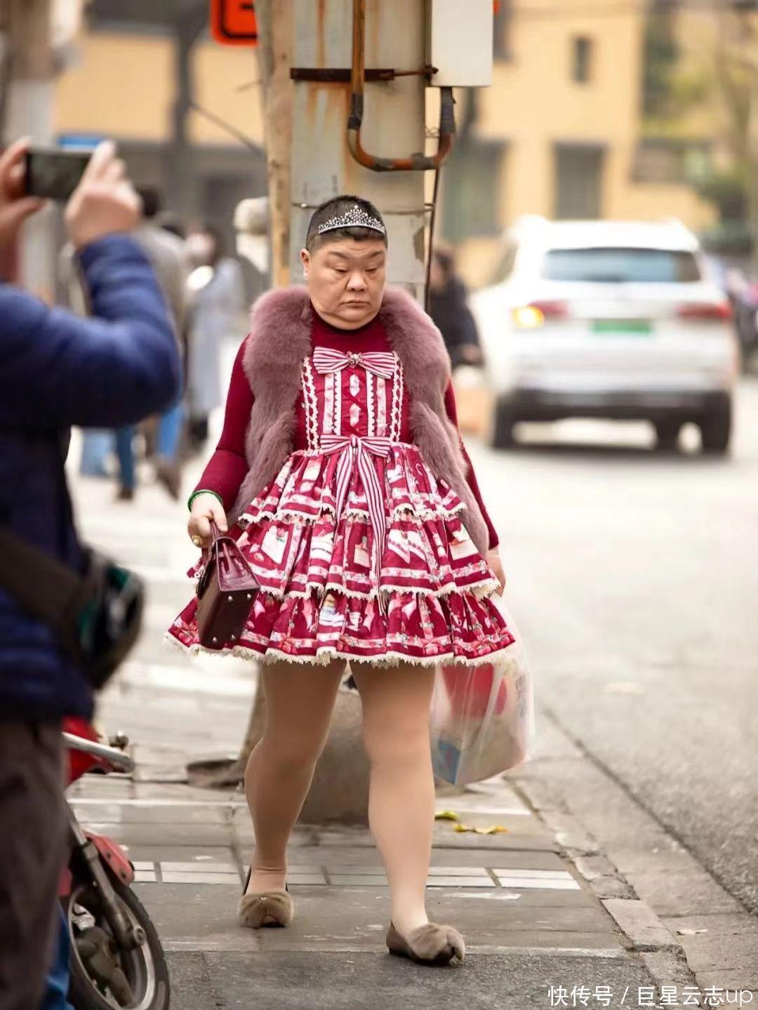 体态圆胖,大腿粗壮的她衣服公主裙走在街上,在2021年被网友不测中拍到,一会儿在网上引起热议。