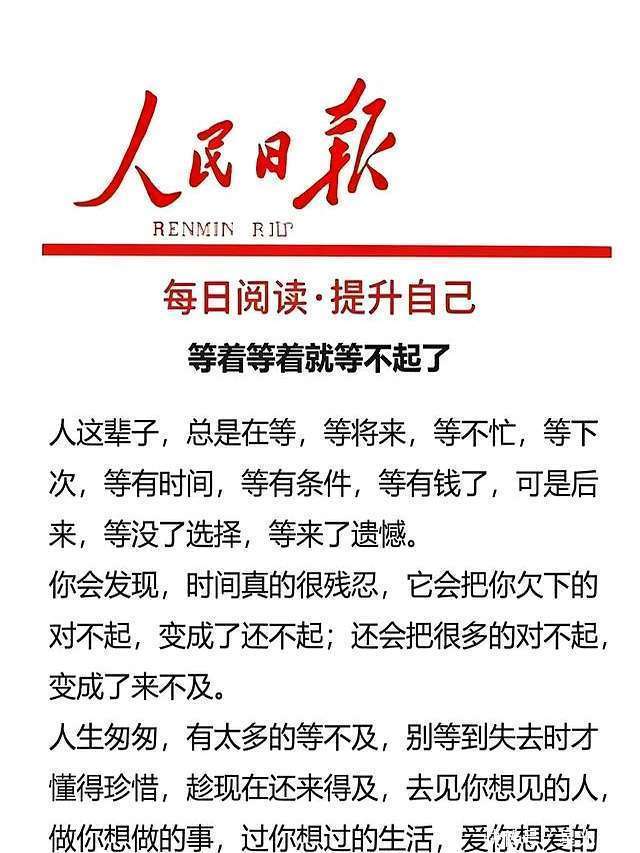 当今流行一个词,叫“内卷”。为了升职加薪,为了不被后浪拍死在沙滩上,中年东说念主那是铆足了劲儿往前冲。职责外交,占据了生涯的大部分时分,家东说念主的需求,频频就被忽略了。“等忙完这阵子,一定多陪陪孩子”、“等赚够了钱,就带爸妈出去旅游”,这话听着耳熟不?可策动赶不上变化,谁也不知说念未来和不测哪个先来。